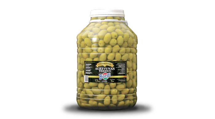 - Ingredientes: Aceitunas verdes, sal y agua.