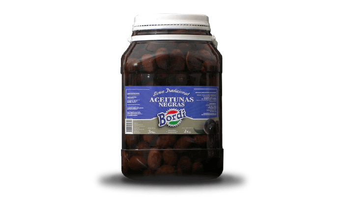 - Ingredientes: Aceitunas negras naturales, sal y agua.