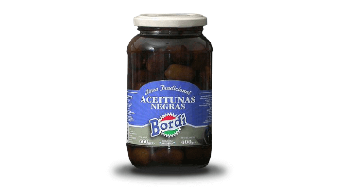 - Ingredientes: Aceitunas negras naturales, sal y agua.