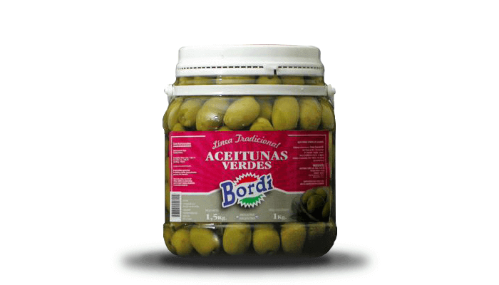 - Ingredientes: Aceitunas verdes, sal y agua.
