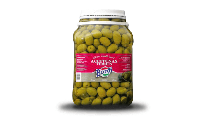 - Ingredientes: Aceitunas verdes, sal y agua.