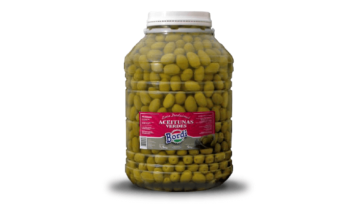 - Ingredientes: Aceitunas verdes, sal y agua.