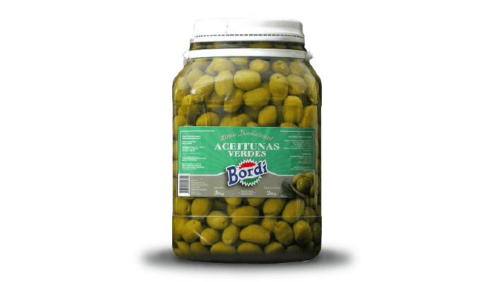 - Ingredientes: Aceitunas verdes, sal y agua.