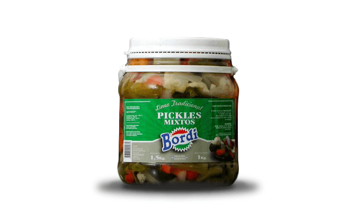 Ingredientes: Pepino, zanahoria, coliflor, hinojo, nabo, morrón, apio, vinagre de alcohol y sal.