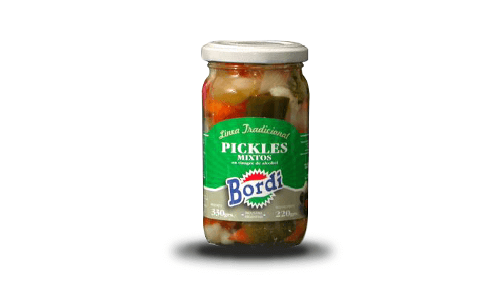 Ingredientes: Pepino, zanahoria, coliflor, hinojo, nabo, morrón, apio, vinagre de alcohol y sal.