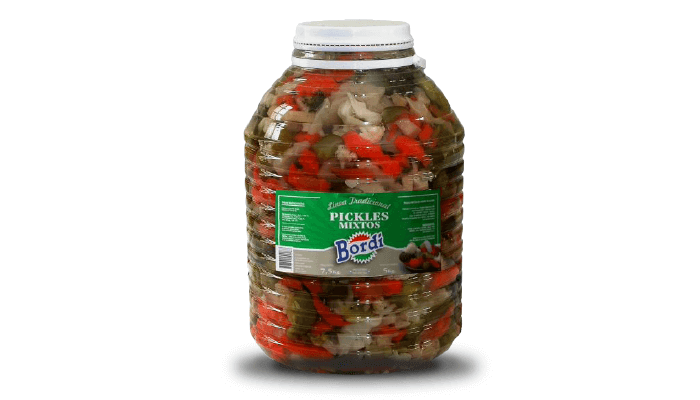 Ingredientes: Pepino, zanahoria, coliflor, hinojo, nabo, morrón, apio, vinagre de alcohol y sal.